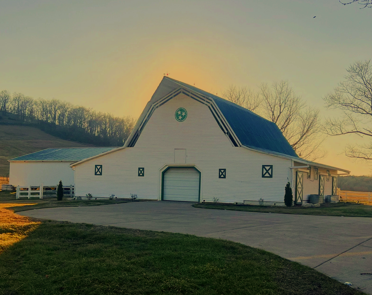 A venue with expansive outdoor areas featuring a classic barn, white fencing, and sweeping sunset views. The property can accommodate tents and custom outdoor layouts, allowing each celebration to be tailored to your vision.